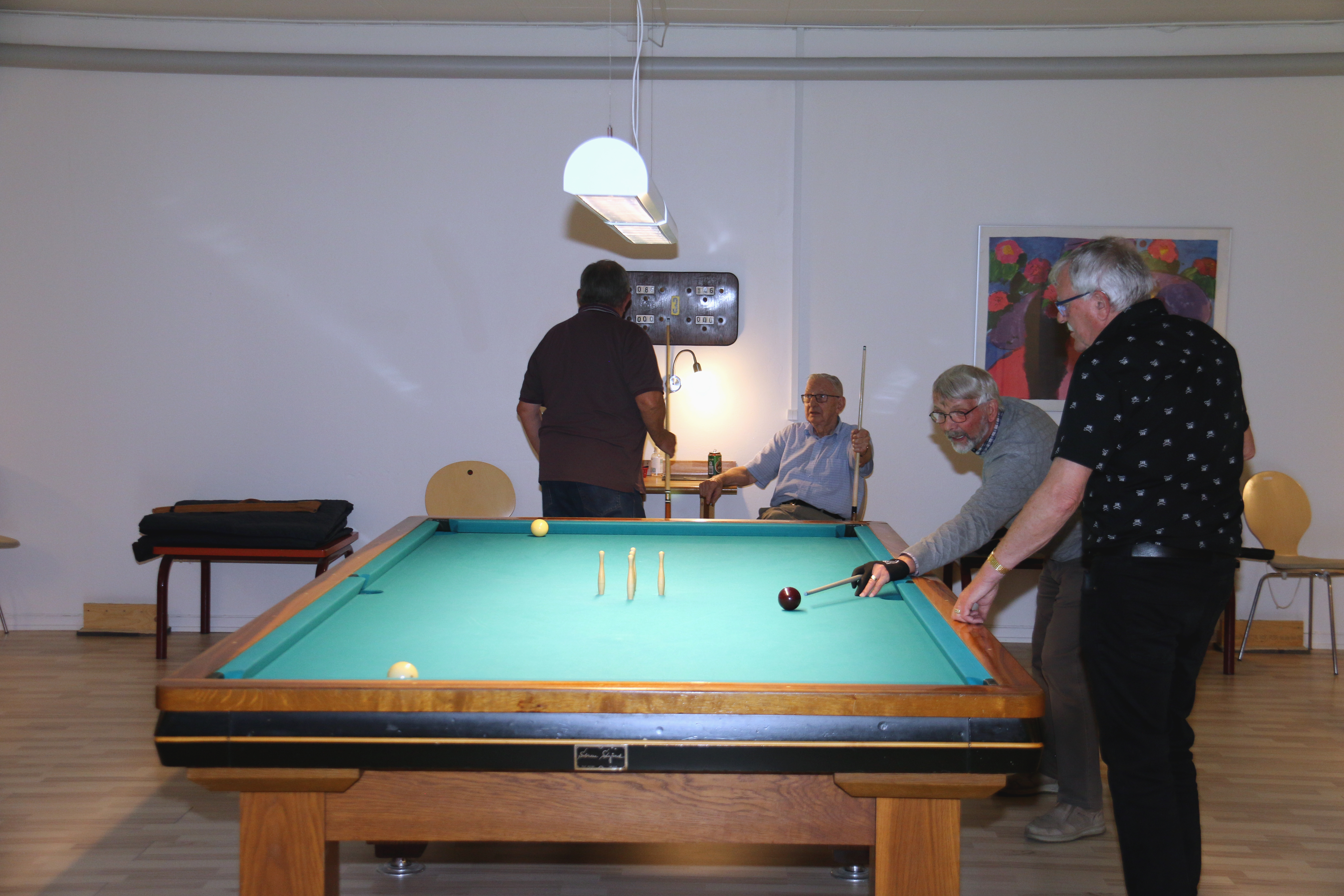 I sæsonen er der tirsdag, onsdag og torsdag mulighed for at spille billard- både som træning og som turnering.
