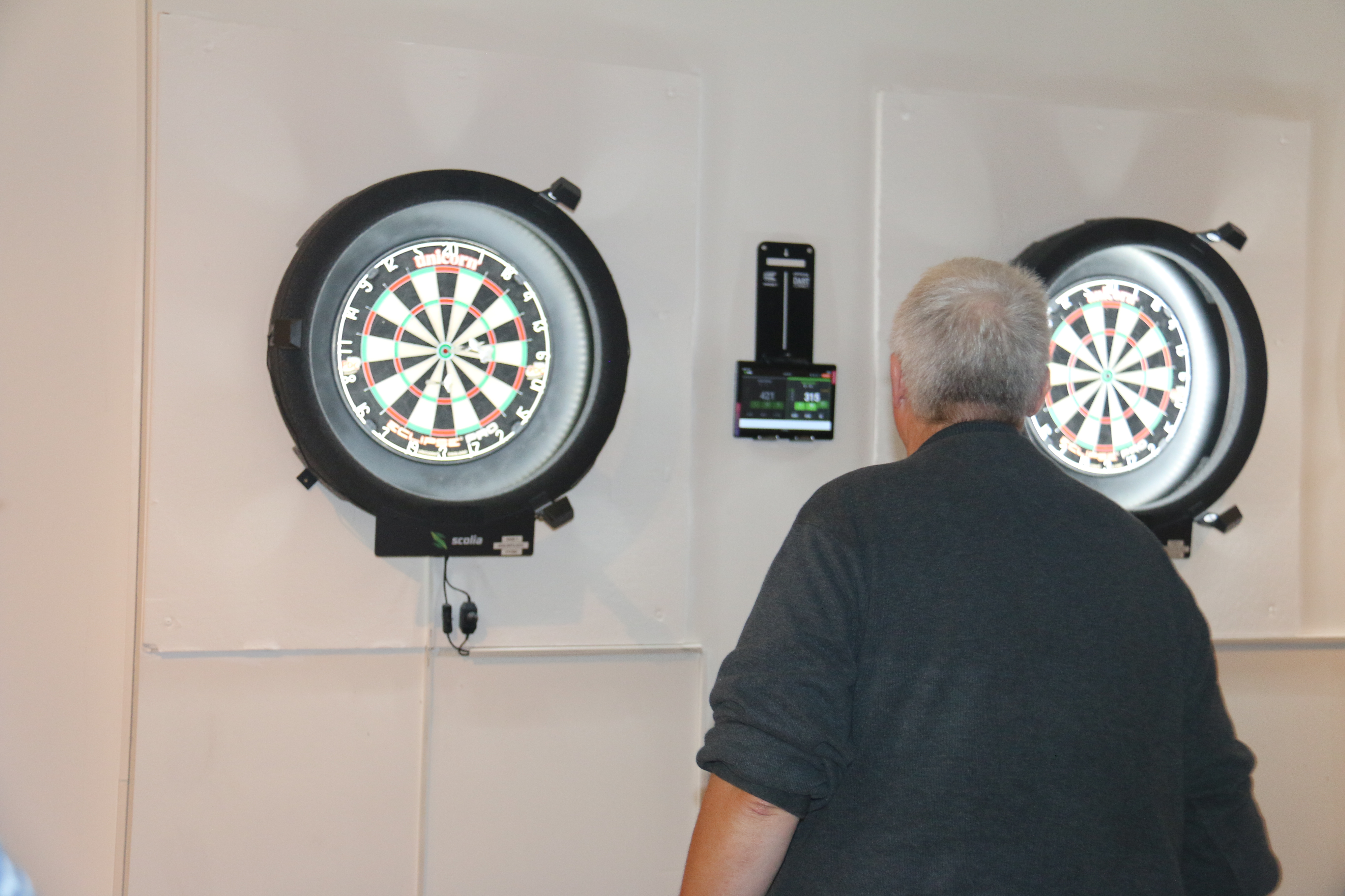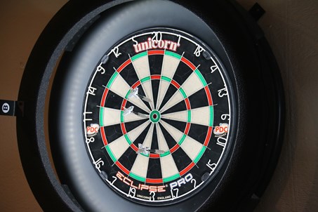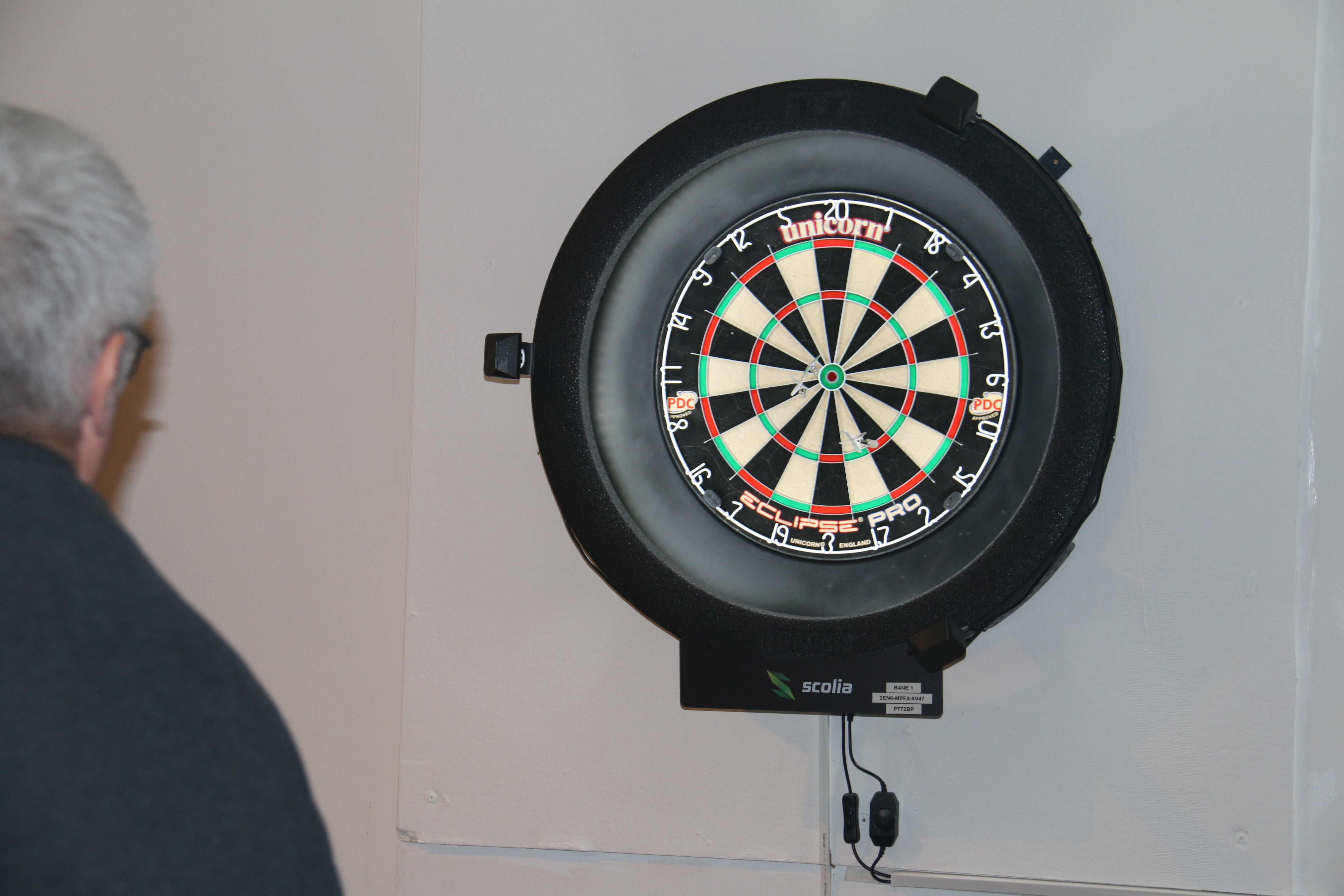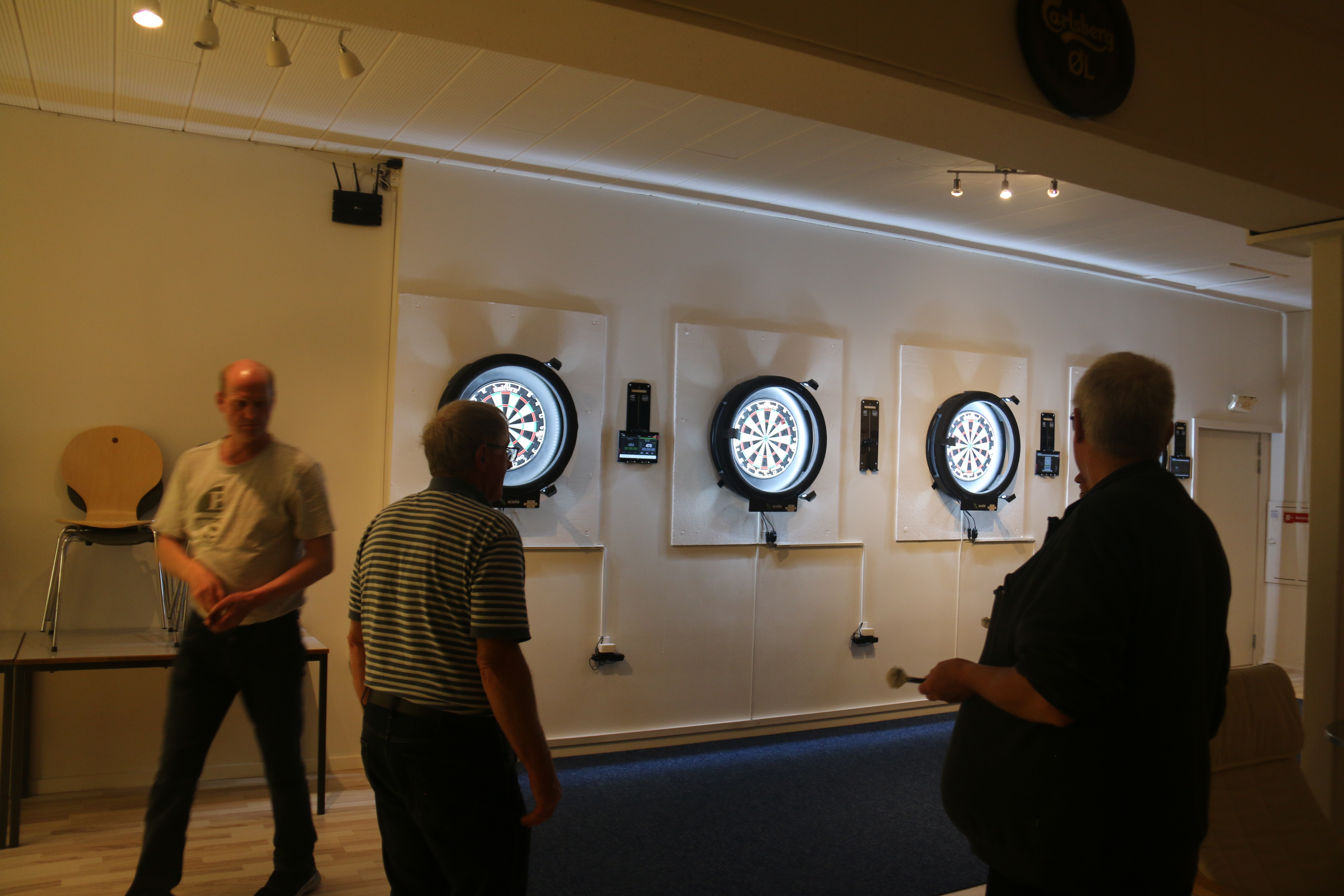 I sæsonen spilles der hver uge dart på vores online dartskiver (Scolia-baner), men med almindelige dartpile. Når man kaster pilene og rammer skiven, tælles pointene automatisk på skærmen, som er placeret ved siden af dartskiven.