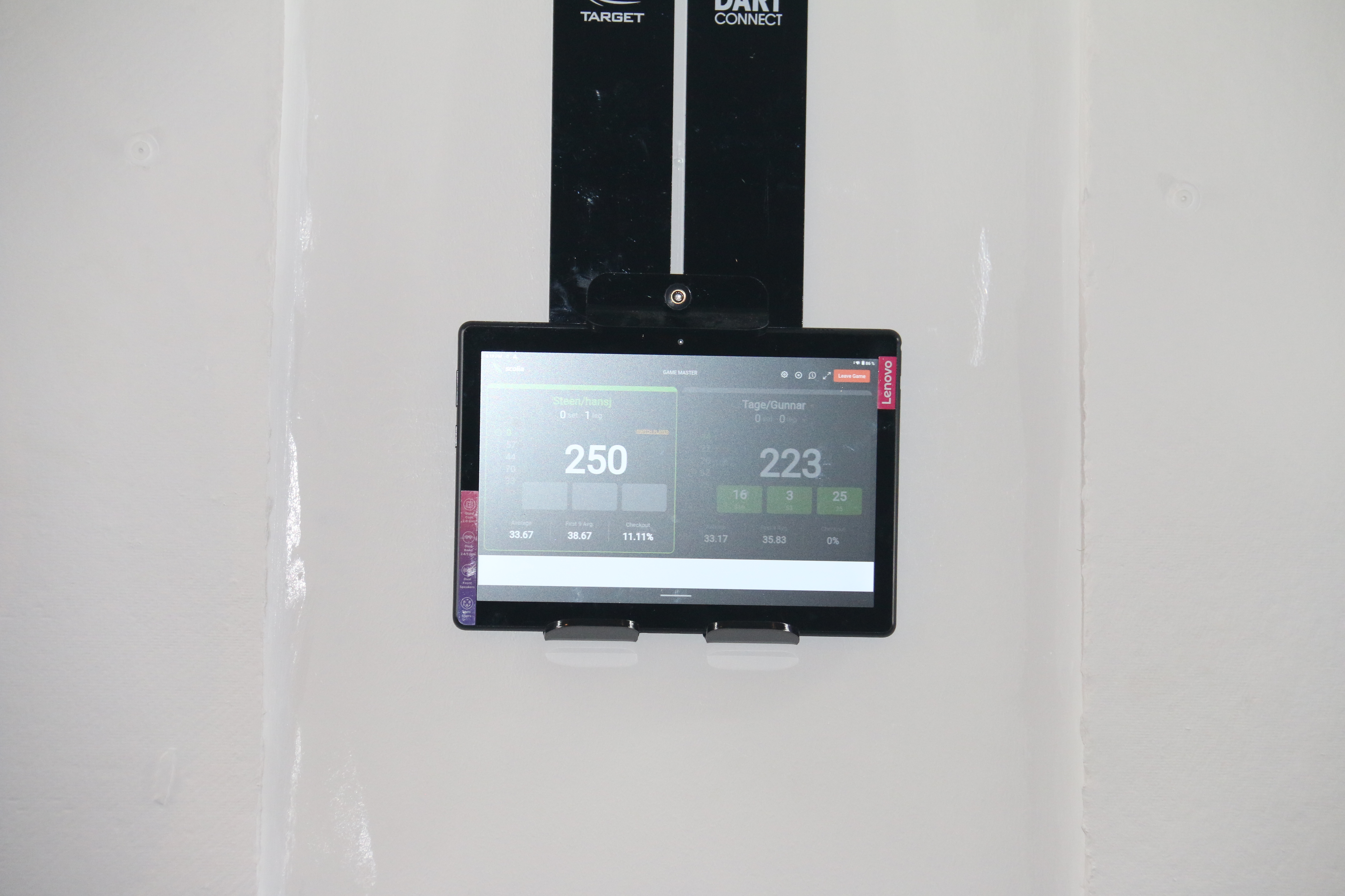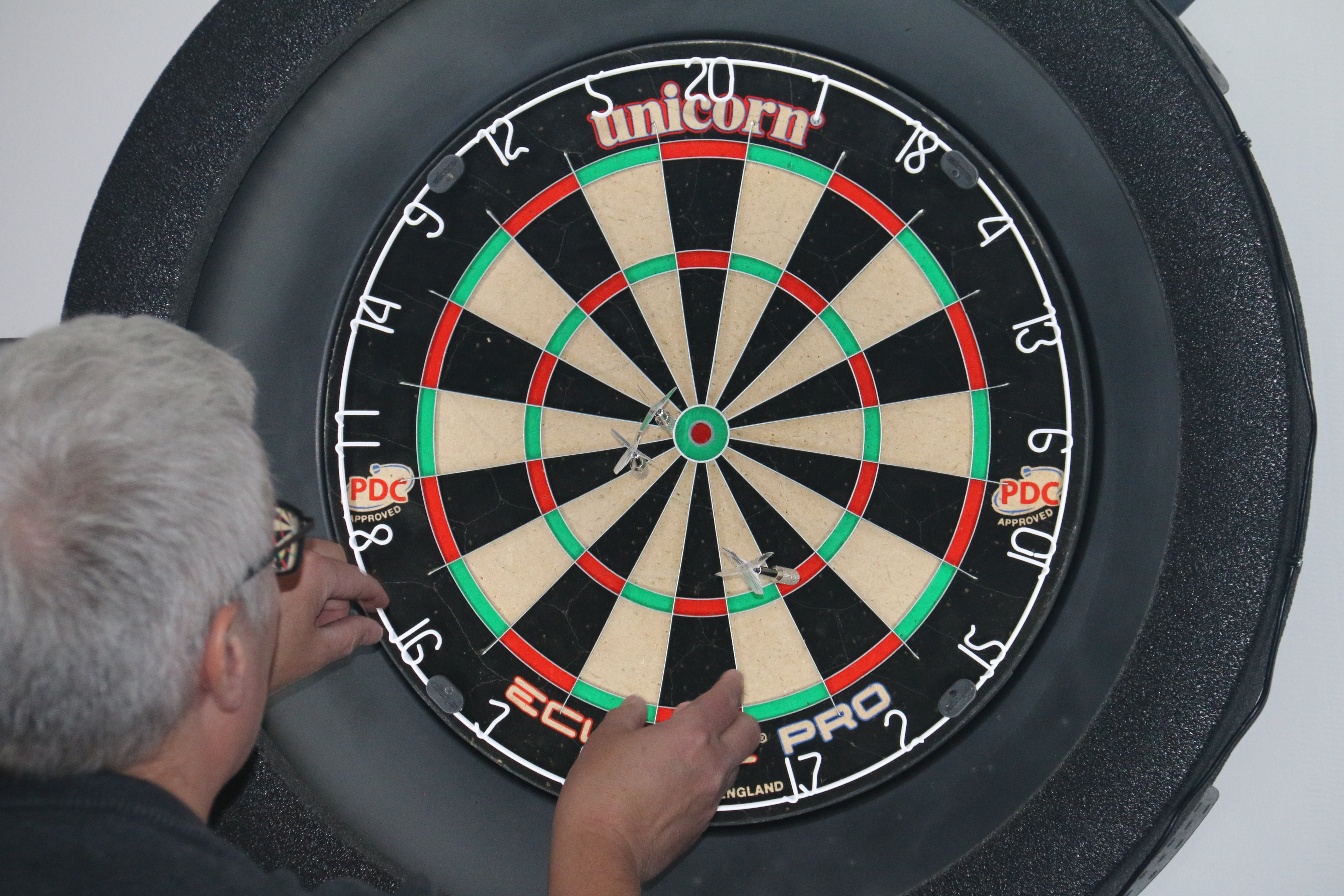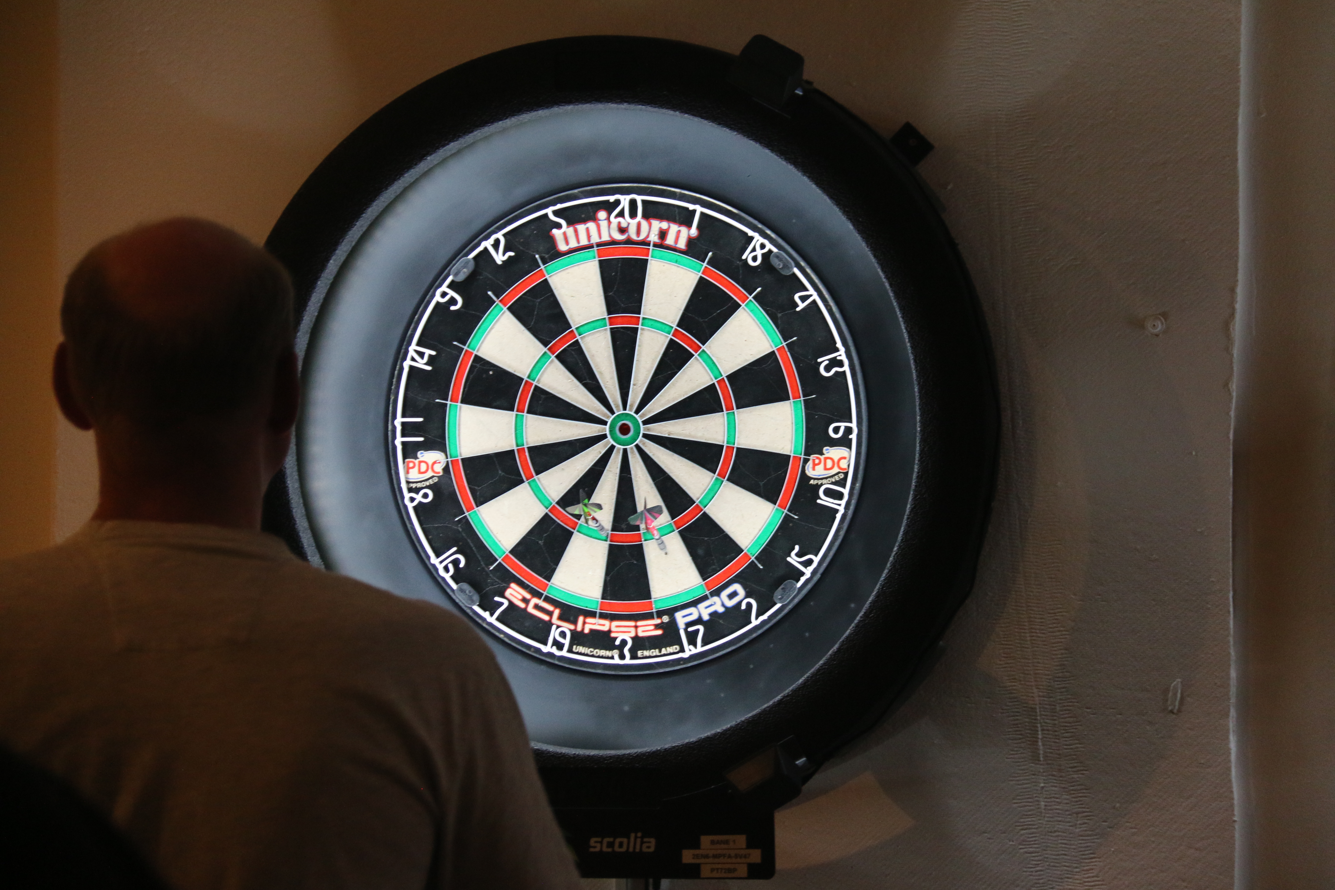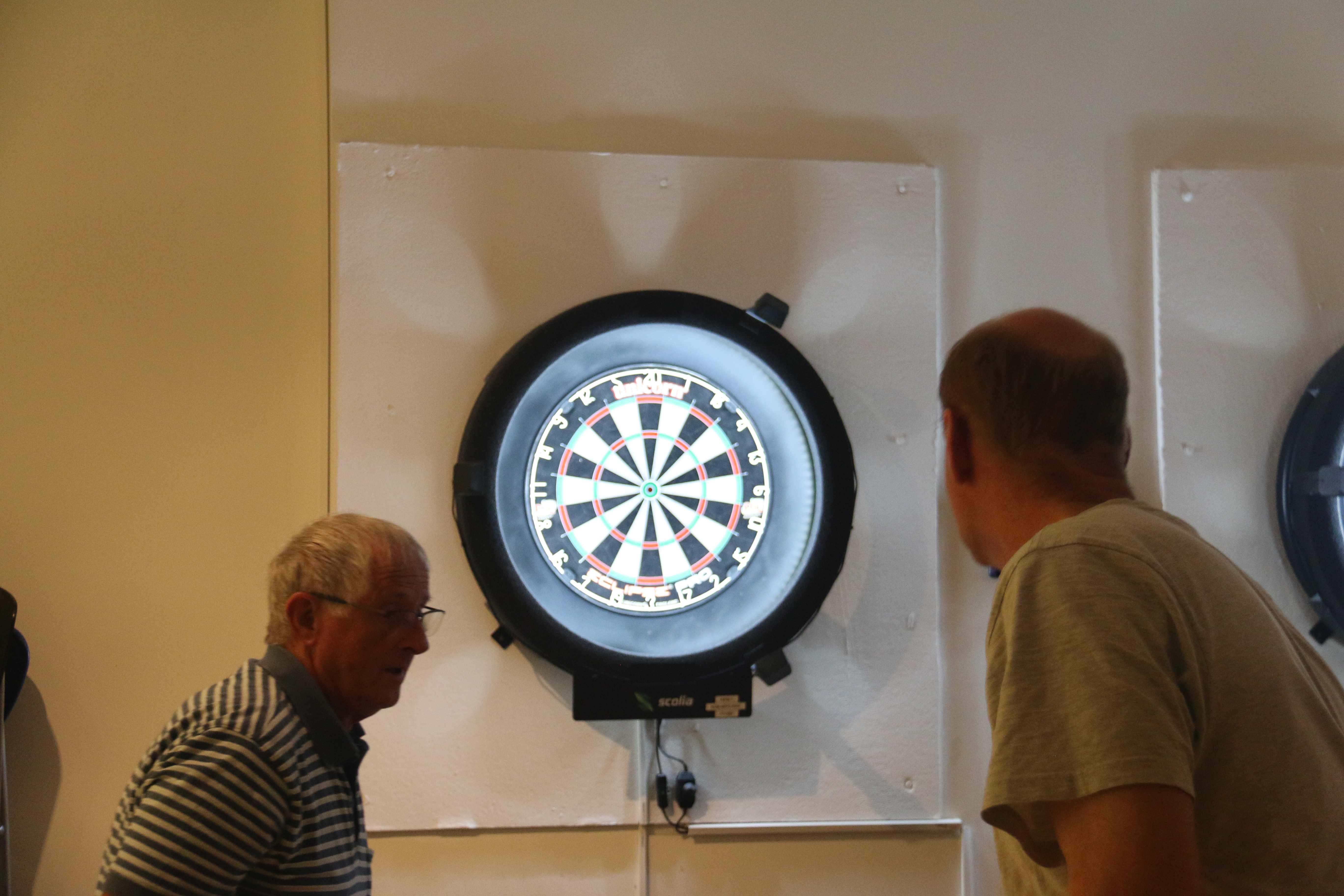 I sæsonen spilles der hver uge dart på vores online dartskiver (Scolia-baner), men med almindelige dartpile. Når man kaster pilene og rammer skiven, tælles pointene automatisk på skærmen, som er placeret ved siden af dartskiven.